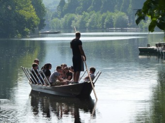 Der Stocherkahn gehört zu Tübingen wie der Hölderlinturm ans Neckarufer. Man sitzt sich zu mehreren gegenüber, lehnt sich entspannt zurück, „schwätzt“ miteinander und bewundert dabei die romantische Kulisse der Tübinger Neckarfront – vorbei am Hölderlinturm, an der Burse, am Stift und an Schloss Hohentübingen.